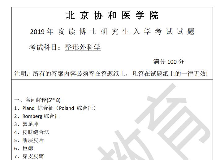 北京协和医学院考博真题年份清单: